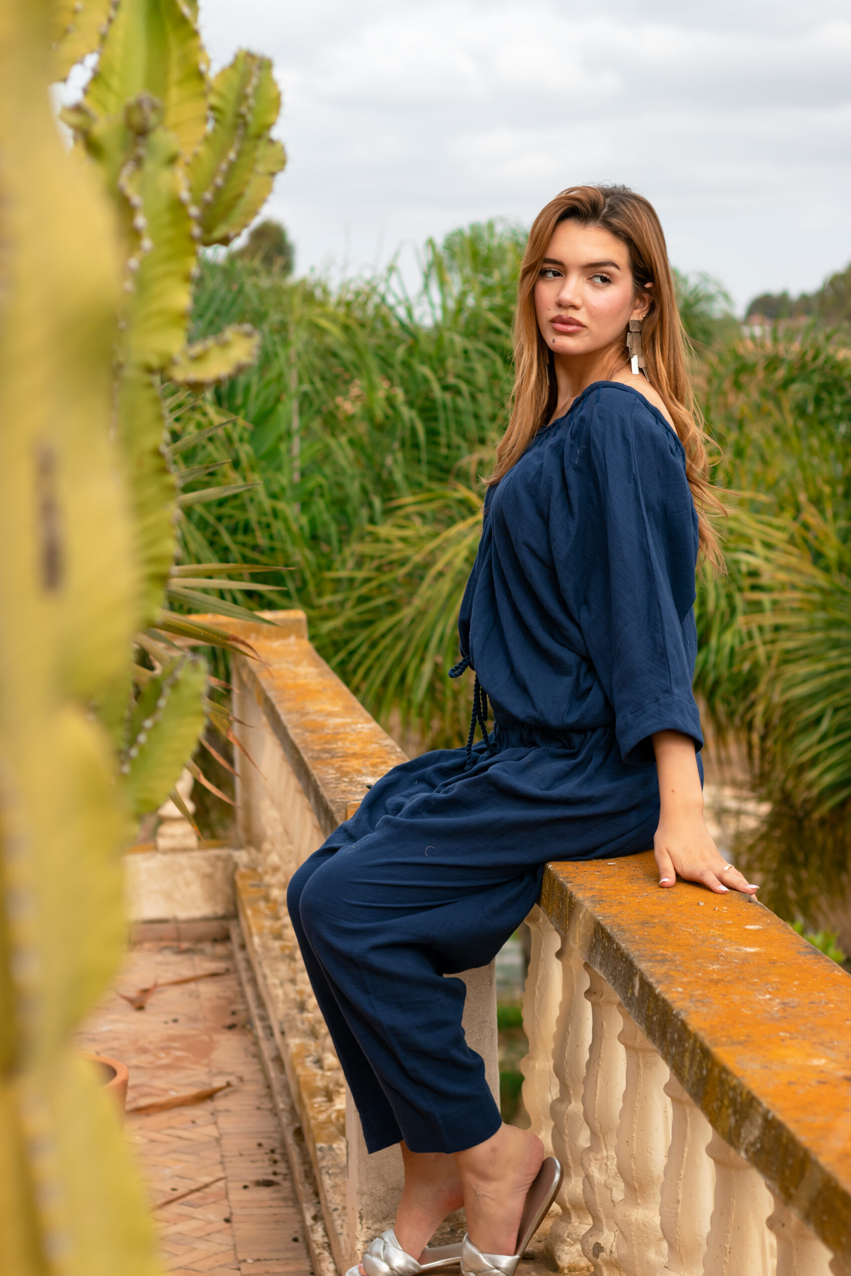 Cet ensemble incarne la simplicité raffinée de l’été. Confectionné en double gaze de coton, un tissu naturellement doux et léger, il offre un confort absolu tout au long de la journée.
